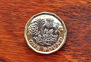そしてつい最近、新1ポンド硬貨が出回るようになりました。(ページ上写真の一番下。拡大下記。)